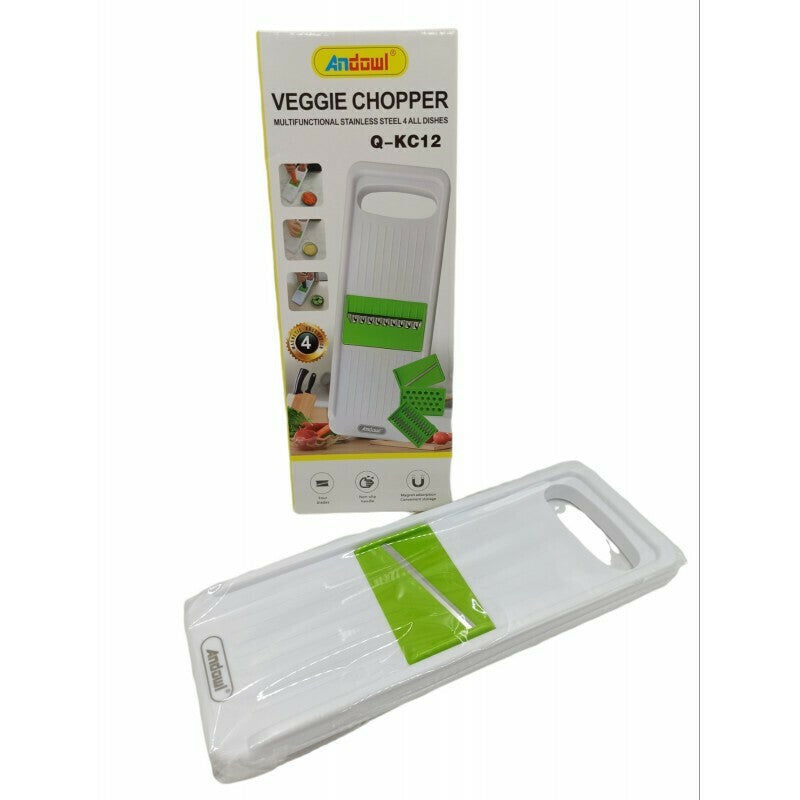Cu mandolina de la compania Andowl puteți tăia legume și fructe cu o grosime uniformă. Plasați leguma sau fructul pe lungimea mandolinei până ajunge la lamă și tăiați în felii.