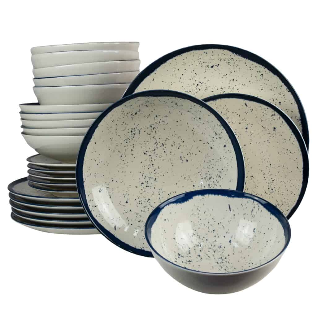 De ce să cumperi Set farfurii 24 piese, pentru 6 persoane, Anchor, Cesiro, Alb Ivoire cu albastru: Cele mai elegante farfurii pentru masa ta