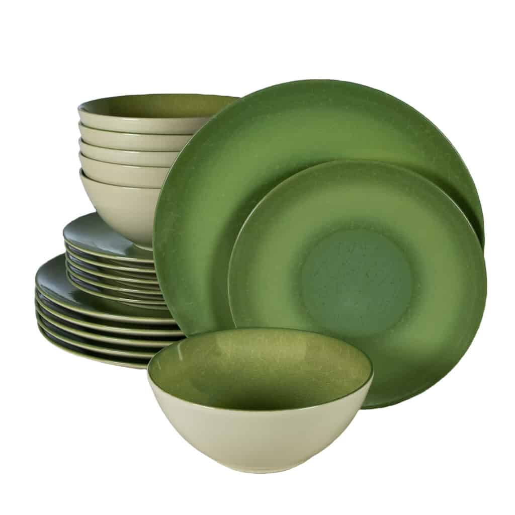 Descopera Set farfurii 18 piese, pentru 6 persoane, Kiwi, Cesiro, Alb Ivoire lucios cu verde: Ce avantaje iti ofera acest produs de calitate superiora?