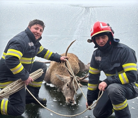 Echipa de pompieri din Brașov a răspuns prompt la apelul de ajutor și a pornit într-o misiune de salvare pe gheață, folosind o barcă pneumatică special adaptată pentru a ajunge la cerbul în pericol. Cu abilități și curaj, pompierii au reușit să se apropie de animalul speriat și să îl salveze în ultima clipă, evitând astfel o tragedie inevitabilă.